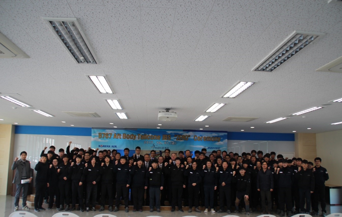 On Friday, December 1, 2017, BOEING Troy Kim and 6 others, Korean Air Line Hyun Jun, Do and 9 others celebrated the event by visiting HIZEAERO. This event has become celebrating Ceremony for successful JBS "ZERO" of B767 Aft Body Tailcone, and many honored guests attended.