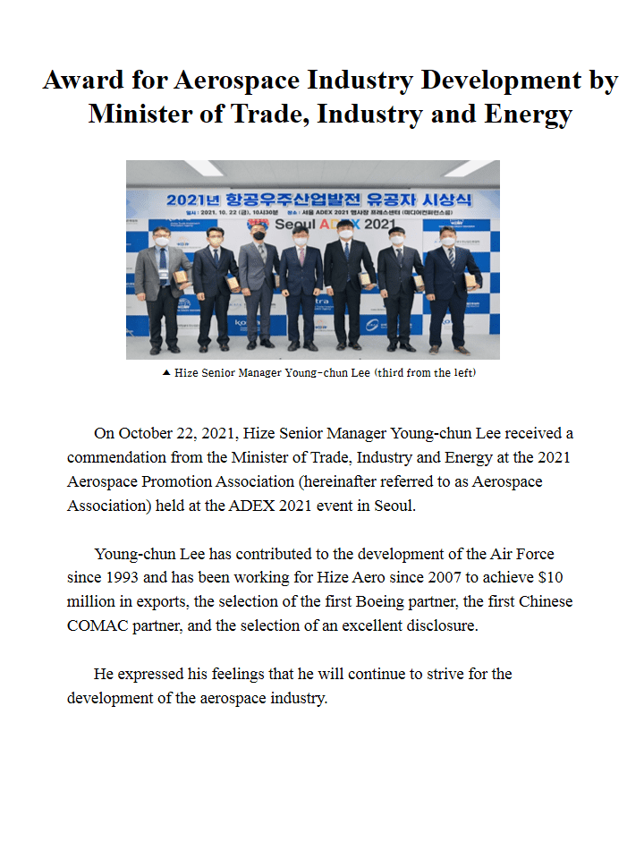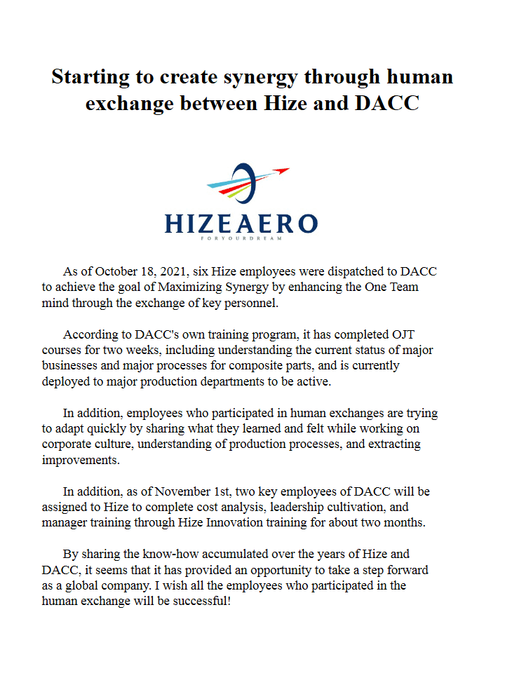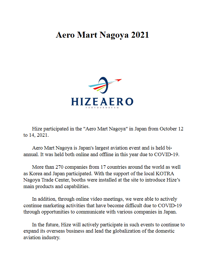 2021-11 HIZEAERO Newsletter